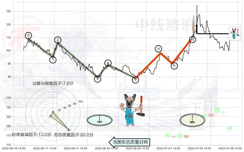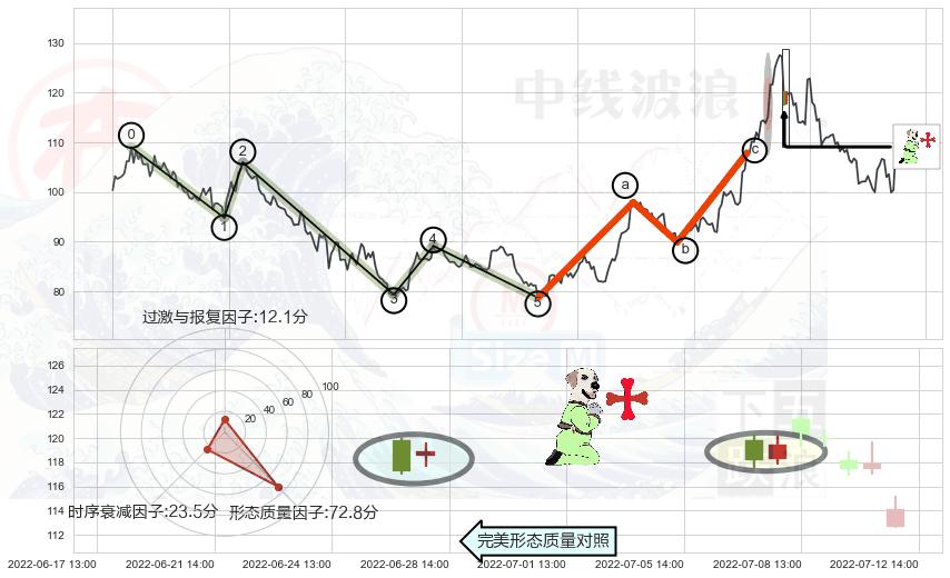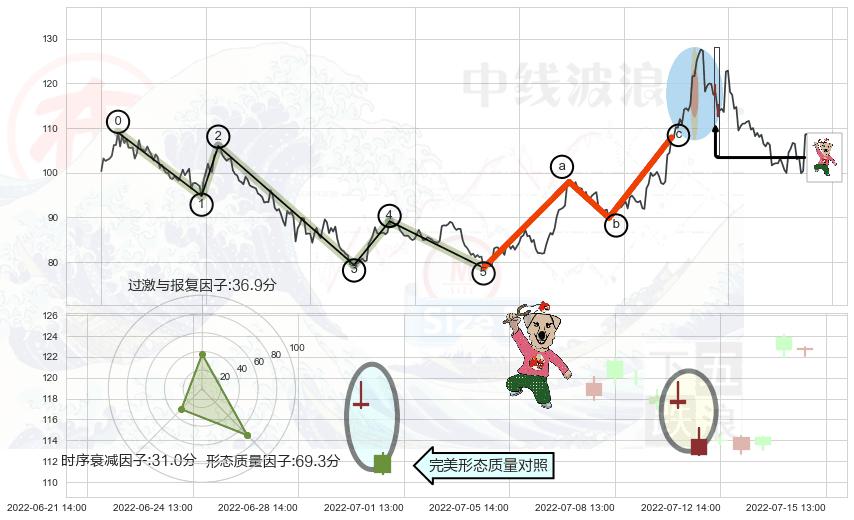 ➢ 🕰 价格走势在2022-07-01 13:00:00至2022-07-01 14:00:00期间形成中流砥柱形态,残存影响值:2.42