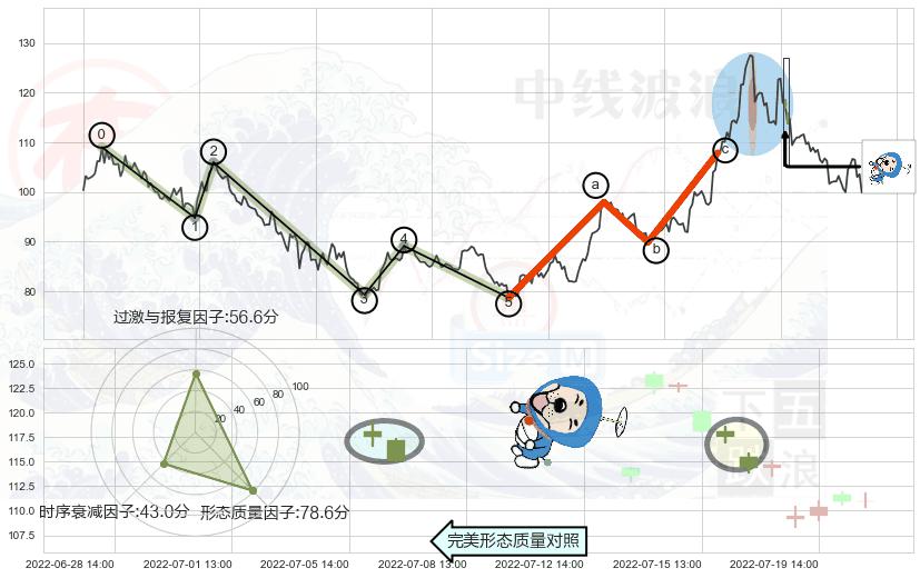 ➢ 🕰 价格走势在2022-07-15 14:00:00至2022-07-18 13:00:00期间形成下跌螺旋桨,残存影响值:-4.70