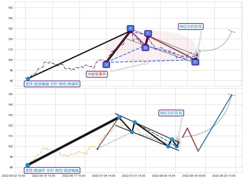 ➢ 谐波蝙蝠属【中级别信号事件】降旗形属【长级别信号事件】中长周期组合信号事件,中长事件长度比52.76%