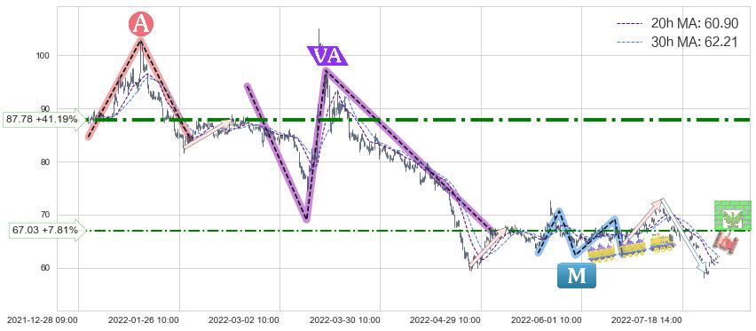 ♘ 阻力价格位67.03,可信任强度53.39%,距离最后交易2022-08-12 14:00形成的收盘价格62.17相差 +7.81%
