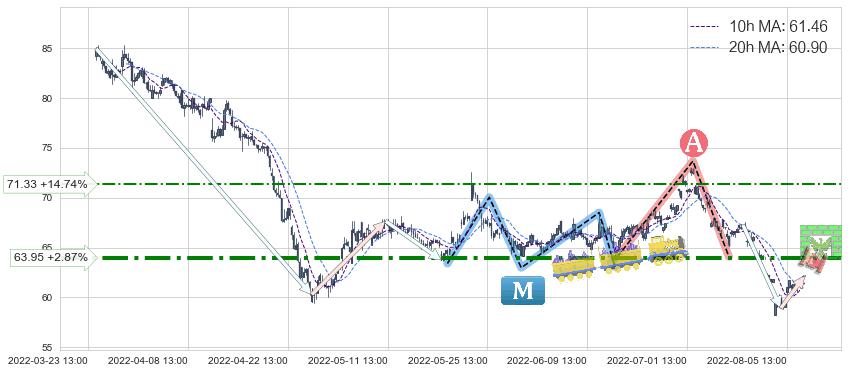 ♘ 阻力价格位71.33,可信任强度53.03%,距离最后交易2022-08-12 14:00形成的收盘价格62.17相差 +14.74%