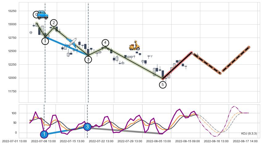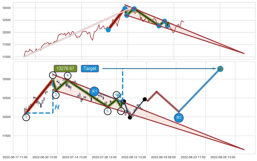 ➢ AI预测: 假定反转启动后, 第❷目标位置(09-13:13, 12361.94)
