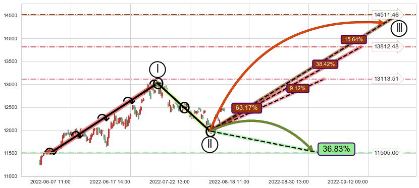 ➣ AI预测: 假定反转启动后, 第❸目标位置(09-16:14, 13022.20)