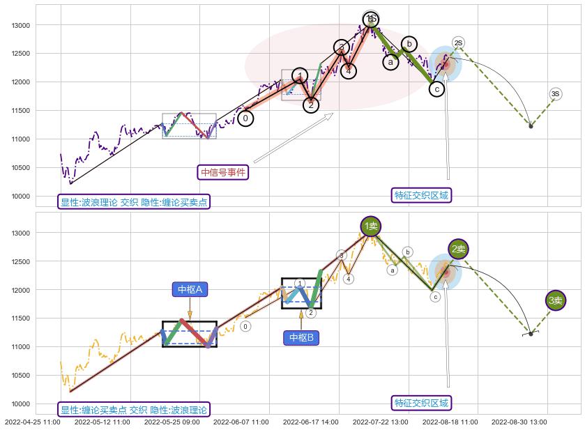 ➣ 缠论买卖点:猜想2卖持续蓄力下跌至3卖 → 下跌 → 风险信号 → 小趋势跟踪