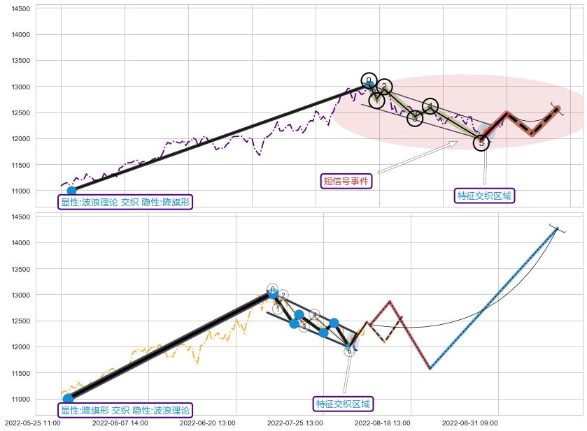 ➢ 波浪理论与降旗形信号事件周期长度级别相同,同周期信号事件