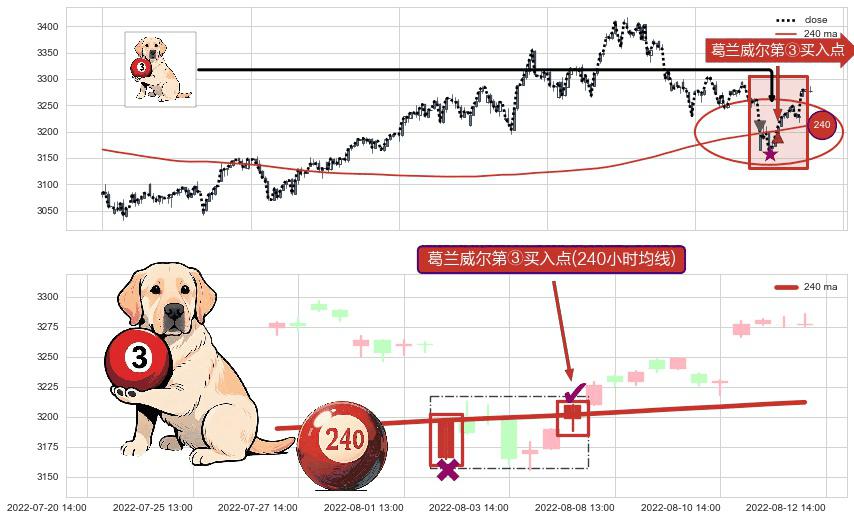 ⚀ 2022-08-05 13:00:00-小时显现 葛兰威尔均线 240小时均线 第③买入点 上升趋势的中继信号,后市看涨,买进信号