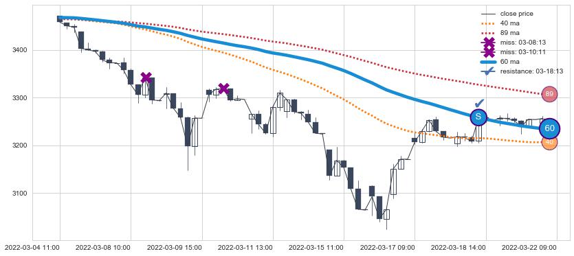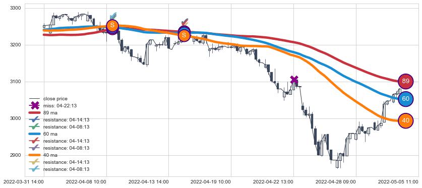 ⚃ 在破位点附近ma走势明显平稳迹象,稍后的走势中ma下垂迹象也出现,信号【可信度中等偏上】