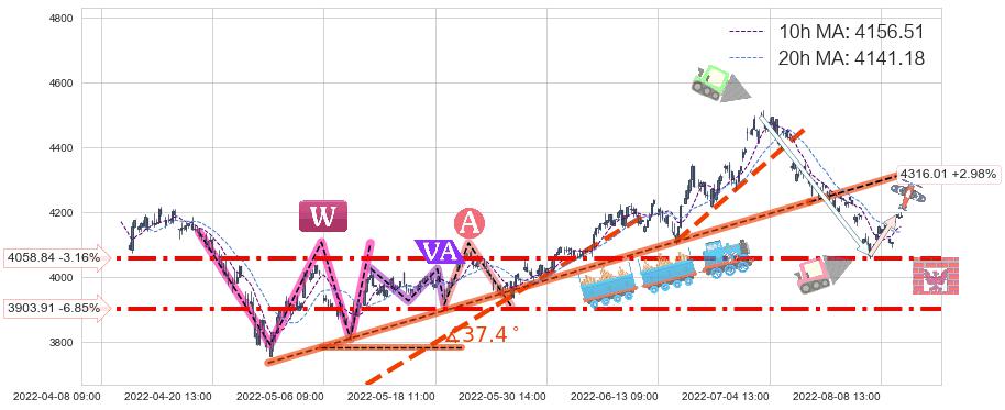 ♘ 支撑价格位4058.84,可信任强度70.76%,距离最后交易2022-08-12 14:00形成的收盘价格4191.20相差 -3.16%