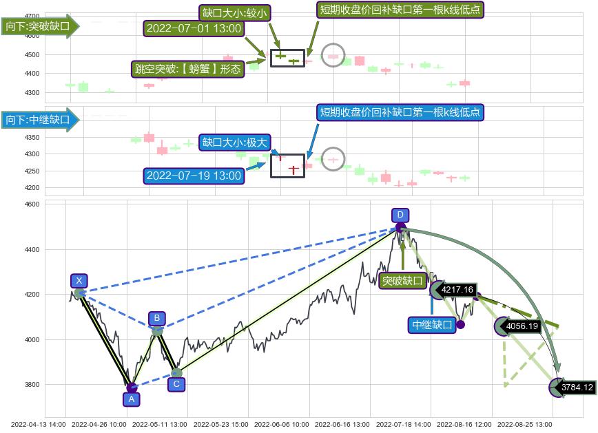 ➢ 2022-07-28 13:00形成:向上跳空【竭尽】缺口