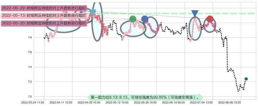 ♘ 阻力价格位8.13,可信任强度99.00%,距离最后交易2022-08-12 14:00形成的收盘价格7.24相差 +12.23%