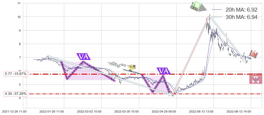 ♘ 支撑价格位5.77,可信任强度60.85%,距离最后交易2022-08-12 14:00形成的收盘价格6.86相差 -15.87%