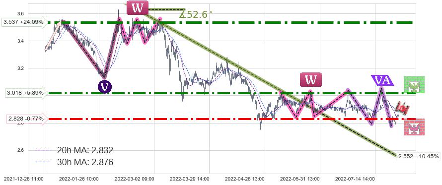 ♘ 阻力价格位3.018,可信任强度75.29%,距离最后交易2022-08-12 14:00形成的收盘价格2.850相差 +5.89%