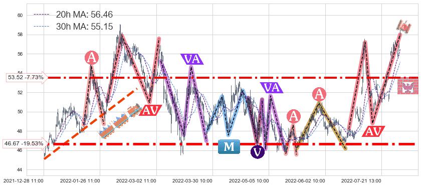 ♞ 20小时均线:56.46,30小时均线:55.15→ 快线>慢线