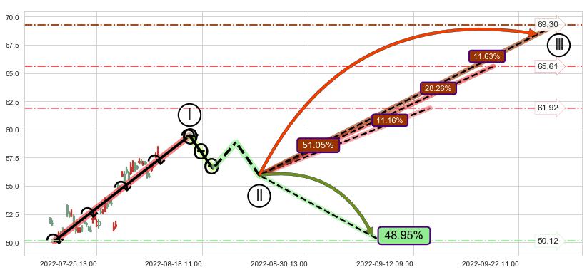 ➢ 循环浪继续向上【最低】位置(09-13:11, 61.92),匹配聚类样本比例21.85%, 可能性概率11.16%