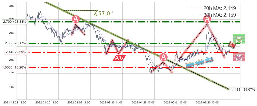 ♘ 阻力价格位2.700,可信任强度81.97%,距离最后交易2022-08-12 14:00形成的收盘价格2.190相差 +23.31%
