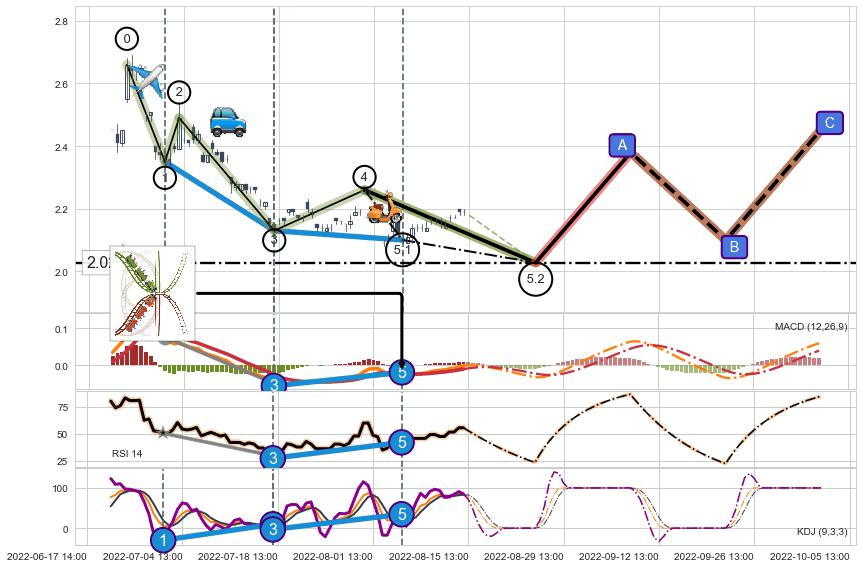 ➣ 5.1: 预测当前第5浪位置(08-04:13, 2.100),仍然有下跌空间