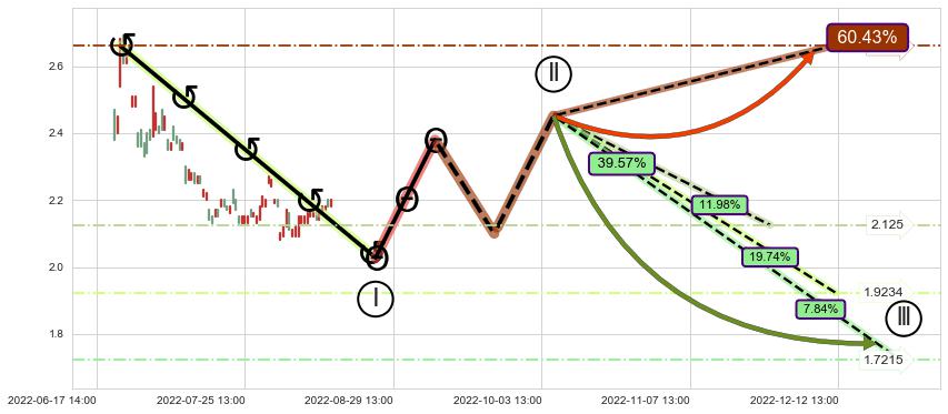 ➢ 循环浪继续向下【最低】位置(12-26:14, 1.7215),匹配聚类样本比例19.82%, 可能性概率7.84%