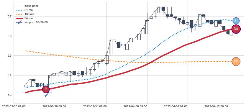 上涨趋势03-25 09:00-04-12 10:00,均线34确认关键支撑1处