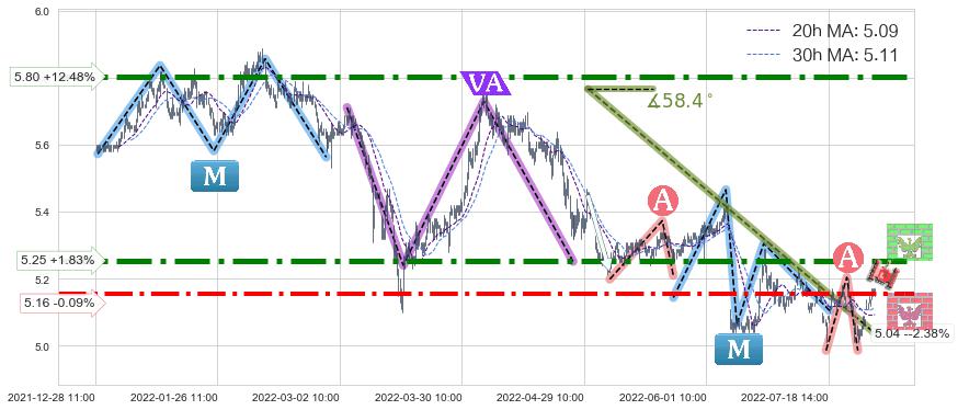 ♞ 20小时均线:5.09,30小时均线:5.11→ 快线<慢线