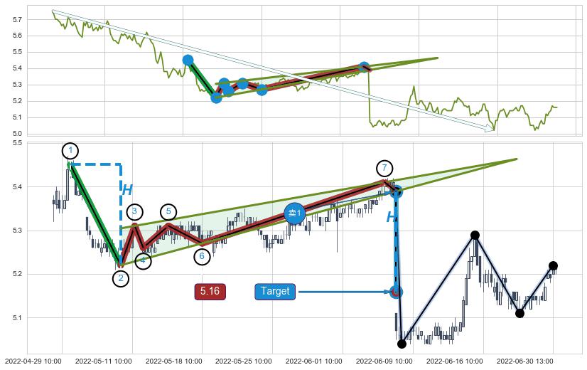 ➢ 最小中继整理跌幅→𝐇: 0.230000 (𝐇楔型旗杆的长度:楔型起点→顶点)