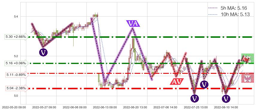 ♘ 阻力价格位5.16,可信任强度76.08%,距离最后交易2022-08-12 14:00形成的收盘价格5.16相差 +0.06%