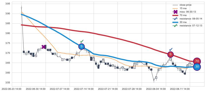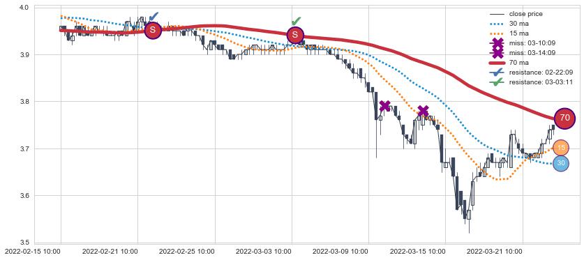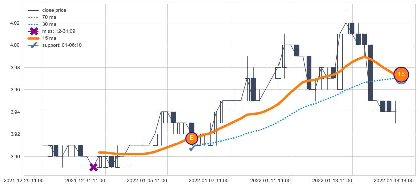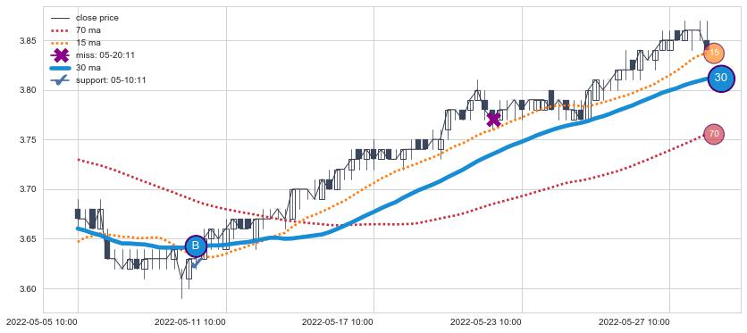 ⚃ 在破位点附近ma走势已有下垂迹象,稍后的走势中ma下降趋势明显,信号【可信度高】