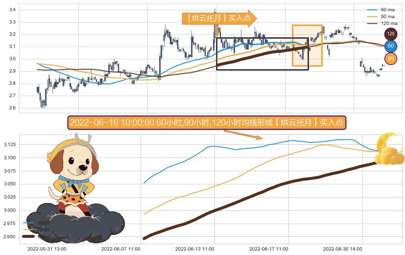 形态多维评估: ⚀ 2022-06-07 13:00:00小时-2022-07-05 14:00:00小时显现 60小时-90小时-120小时均线 【烘云托月】买入点 看多信号,后市看涨,买入