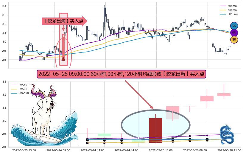 形态多维评估: ⚀ 2022-05-25 09:00:00小时显现 60小时-90小时-120小时均线 【蛟龙出海】买入点 看多信号,后市看涨,买入