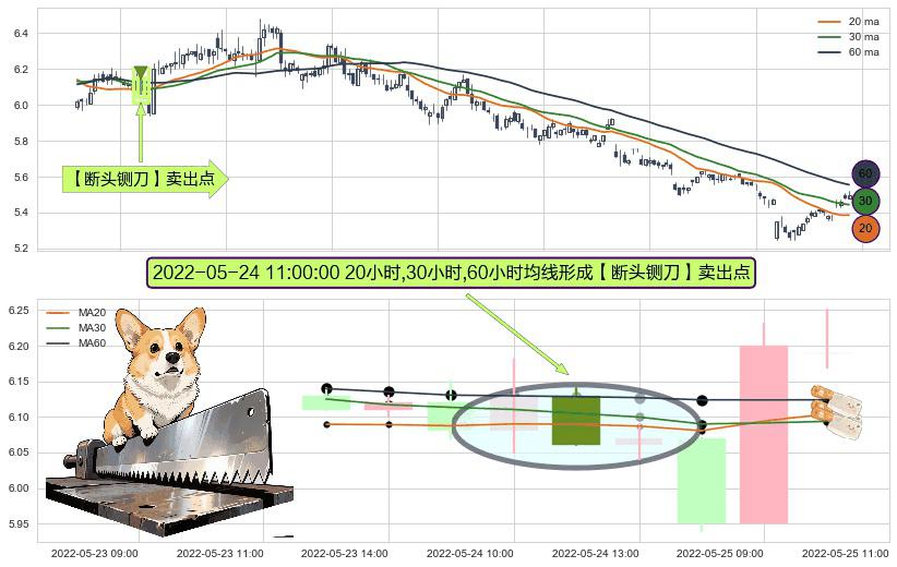 ⚀ 2022-05-24 11:00:00小时显现 20小时-30小时-60小时均线 【断头铡刀】卖出点 看空信号,后市看跌,卖出