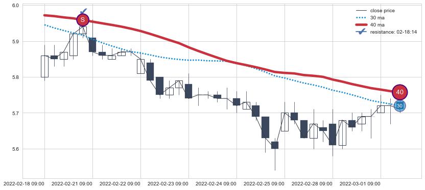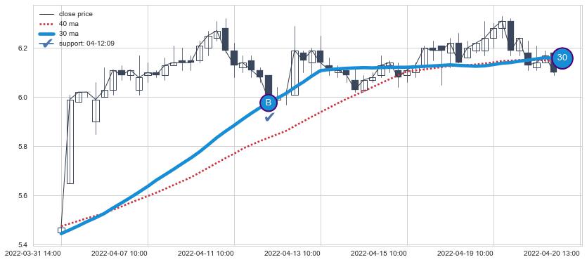 ⚃ 在破位点附近ma走势已有下垂迹象,稍后的走势中ma下降趋势明显,信号【可信度高】