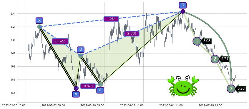➣ 已完成【螃蟹】形态起点X: 02-11:10, 终点D: 06-01:11, 共366交易小时