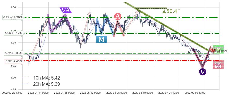 ♘ 阻力价格位5.52,可信任强度39.43%,距离最后交易2022-08-12 14:00形成的收盘价格5.50相差 +0.33%