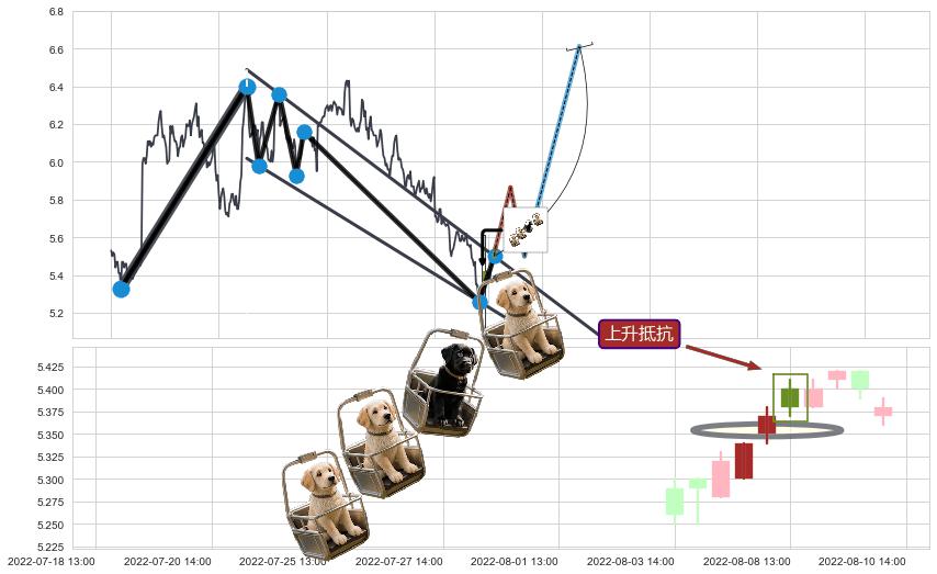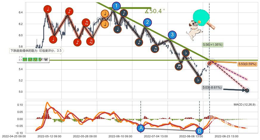 ➢ 预测:2022-08-15 12:00,【小幅反弹】稳定目前下跌趋势的前提下,预测价格:5.53
