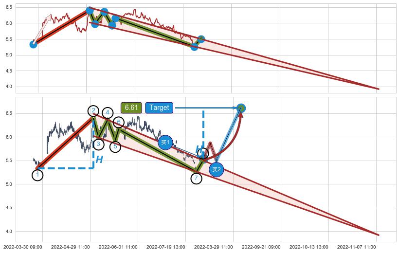 ➢ AI预测: 假定反转如期而至,第❶价格目标位置(08-18:11, 5.71)
