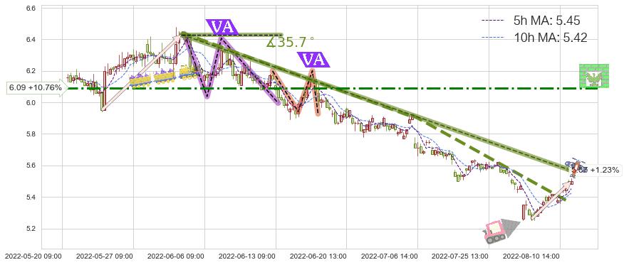 ➣ 预测:2022-08-24 11:00,【继续下探】稳定目前下跌趋势的前提下,预测价格:5.10