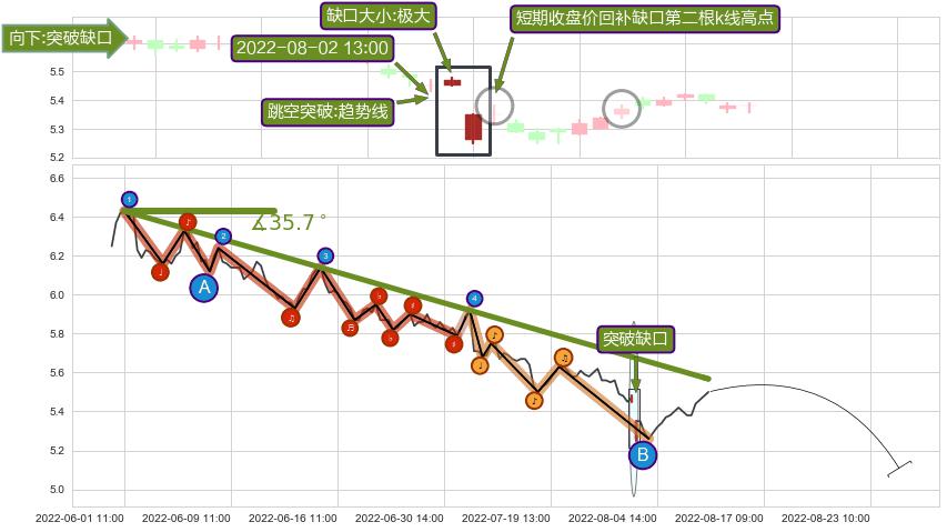 ➢ 2022-08-02 13:00形成:向下跳空【突破】缺口