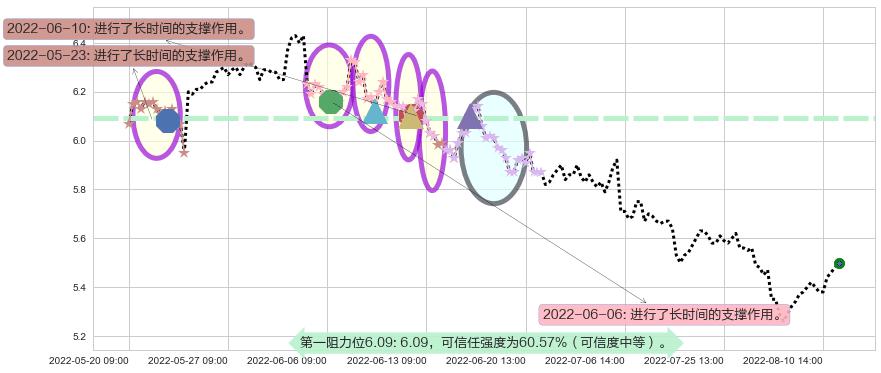 ♘ 阻力价格位6.09,可信任强度60.57%,距离最后交易2022-08-12 14:00形成的收盘价格5.50相差 +10.76%
