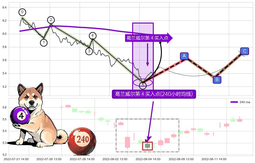 ➢ 收盘价(08-05:14: 5.37 )→再次回踩→第二根k线高点(08-02:13: 5.35 )