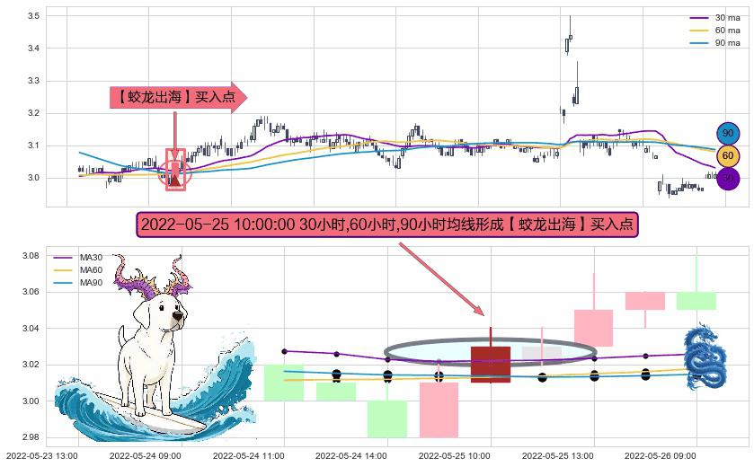 形态多维评估: ⚀ 2022-05-25 10:00:00小时显现 30小时-60小时-90小时均线 【蛟龙出海】买入点 看多信号,后市看涨,买入