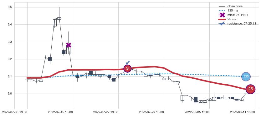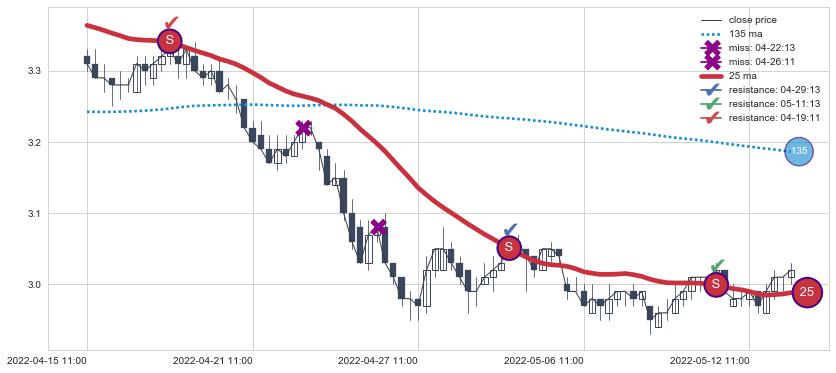 下跌趋势04-15 11:00-05-13 11:00,均线25确认关键阻力3处