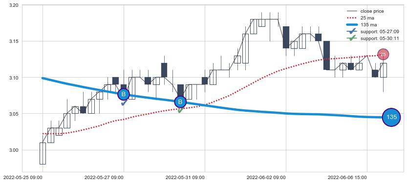 上涨趋势05-25 09:00-06-07 10:00,均线135确认关键支撑2处