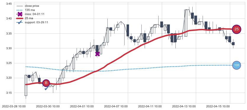 上涨趋势03-28 10:00-04-15 11:00,均线25确认关键支撑1处