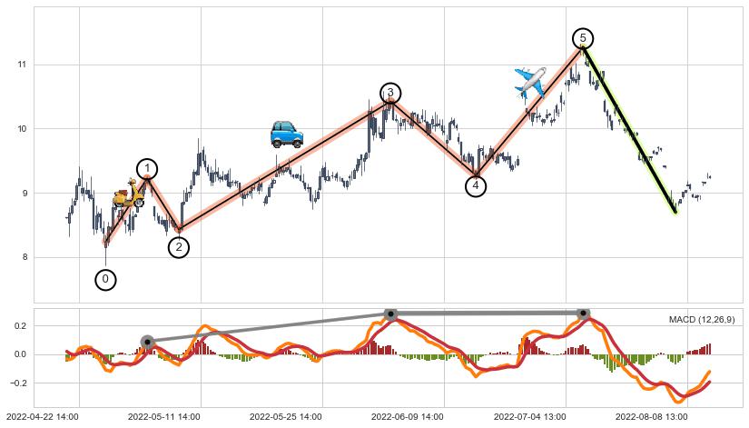 ➣ 已完成【螃蟹】形态起点X: 03-30:14, 终点D: 07-07:14, 共284交易小时