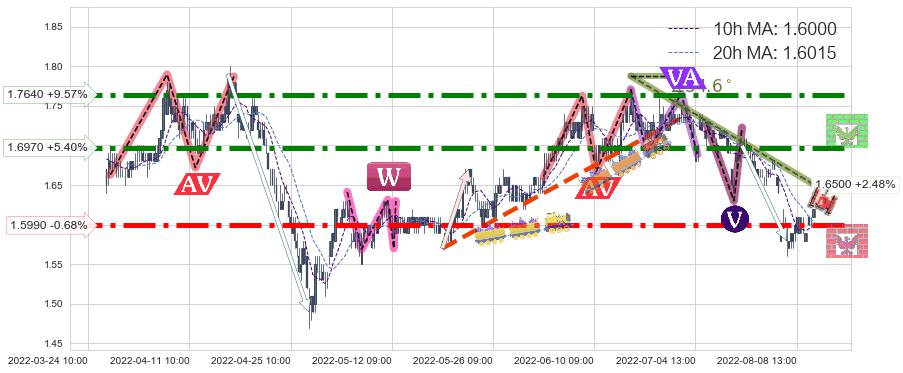♘ 阻力价格位1.6970,可信任强度90.58%,距离最后交易2022-08-12 14:00形成的收盘价格1.6100相差 +5.40%