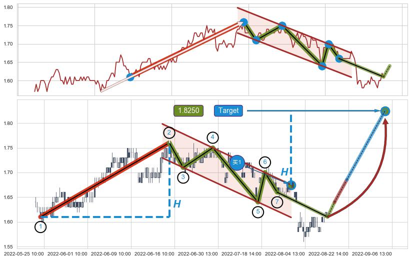 ➣ 最小中继整理跌幅→𝐇: 0.220000 (𝐇旗杆的长度:旗杆起点→顶点)