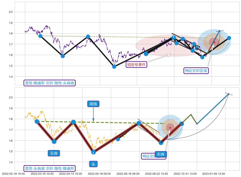 | 5 🅚:绵绵阴跌|下跌不止 ➕ 📐:头肩顶下行突破支撑位破位, 猜想持续下沉下跌,被突破的支撑位已变为阻力位 ☞ 看空信号 ⇥ 【🅚线】交织【图形】⇥ 综合量化分数: 43 | > |