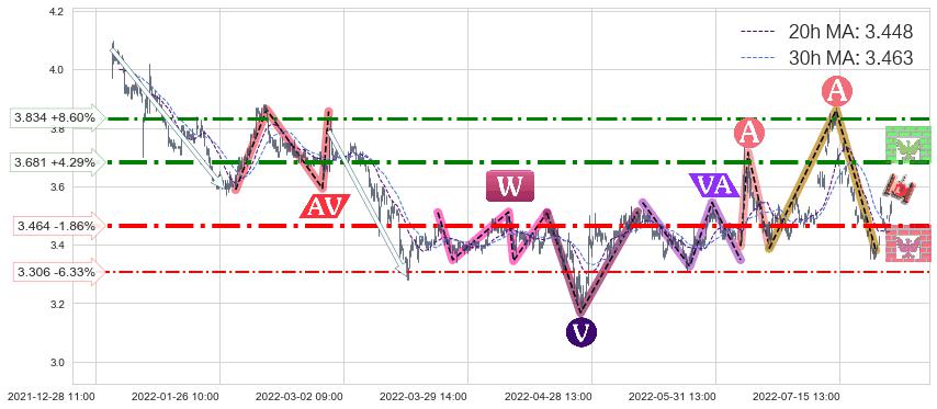 ♞ 20小时均线:3.448,30小时均线:3.463→ 快线<慢线