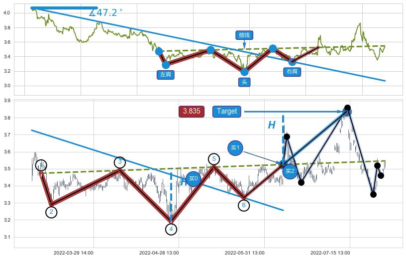 ➣ 最小反转涨幅→𝐇: 0.31081 (头部与颈线垂直距离)