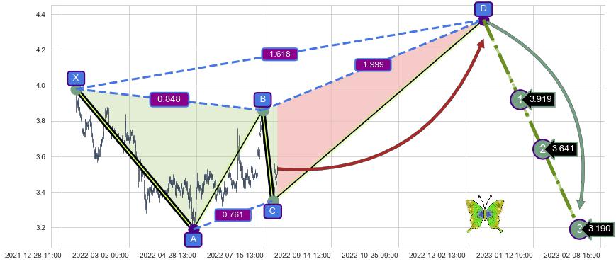 ➣ 未完成【蝴蝶】形态起点X: 01-11:09, 已到达C点: 08-03:14, 预测最终D点: 12-14:10, 共1210交易小时