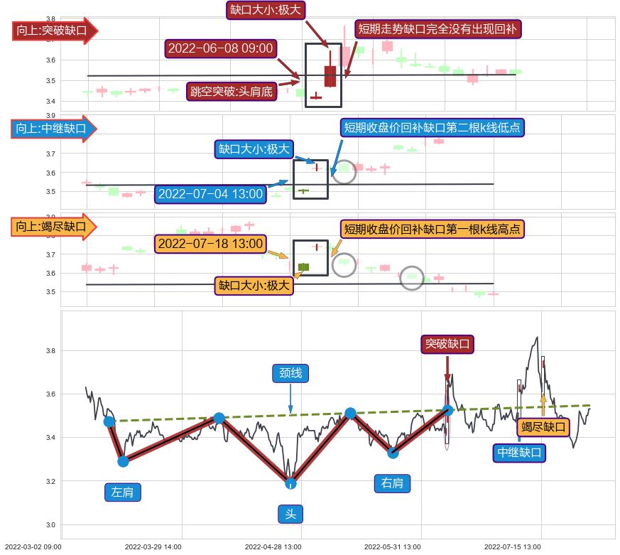 ➢ 2022-07-18 13:00形成:向上跳空【竭尽】缺口